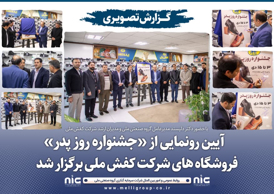 به گزارش روابط عمومی شرکت سرمایه‌گذاری گروه صنعتی ملی، آیین رونمایی از «جشنواره بزرگ روز پدر» فروشگاه‌های کفش ملی با حضور جواد دلپسند، مدیرعامل این گروه و جمعی از مدیران ستادی در فروشگاه 320 مرکزی این شرکت برگزار شد.